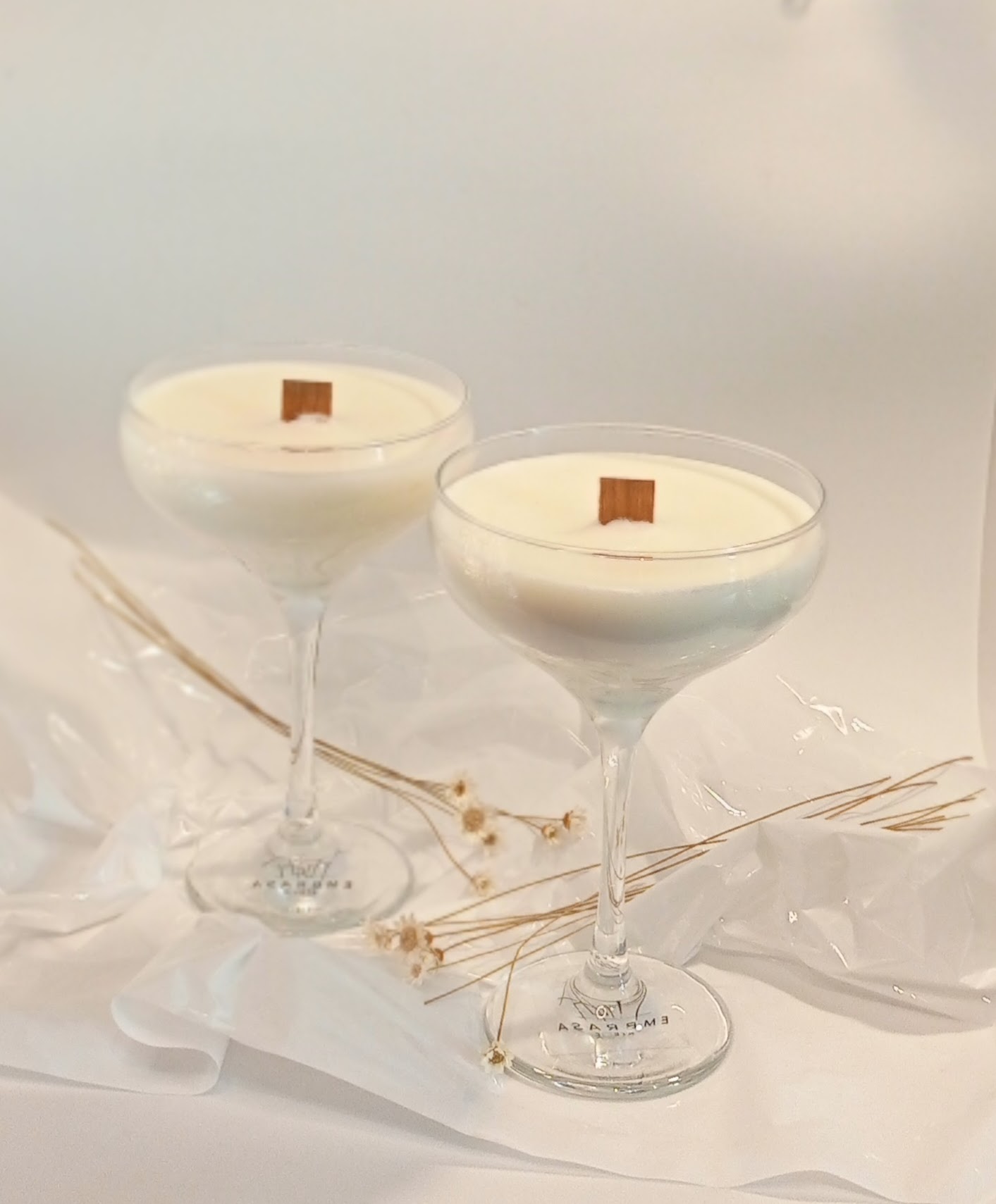 Eleve sua atmosfera com nosso deslumbrante conjunto de velas em taças de vidro, criadas artesanalmente para envolver seus sentidos.