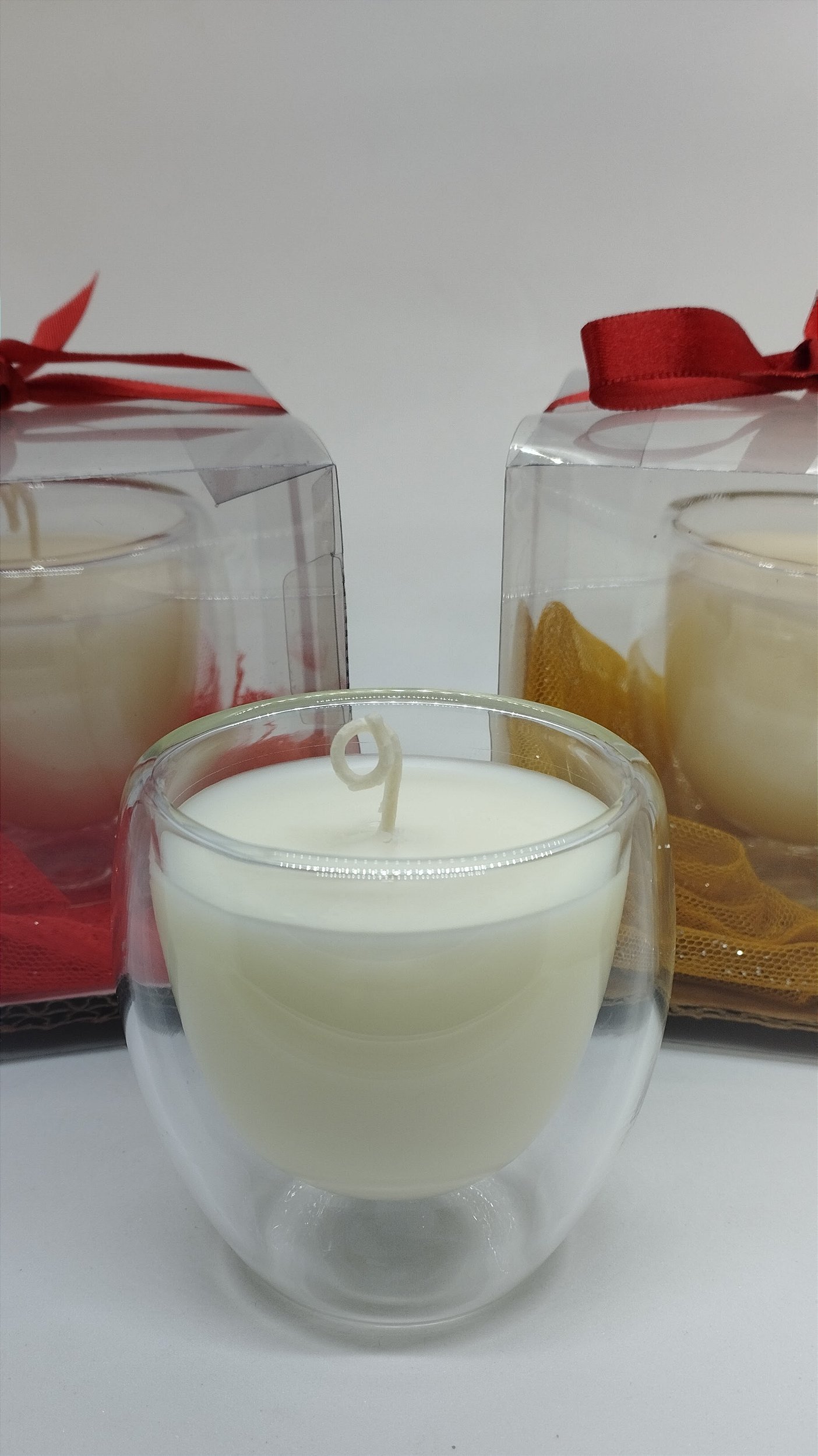 Vela de Vidro Duplo com Cera de Côco e Aroma de Cereja e Avelã - Embalagem Presenteável.
